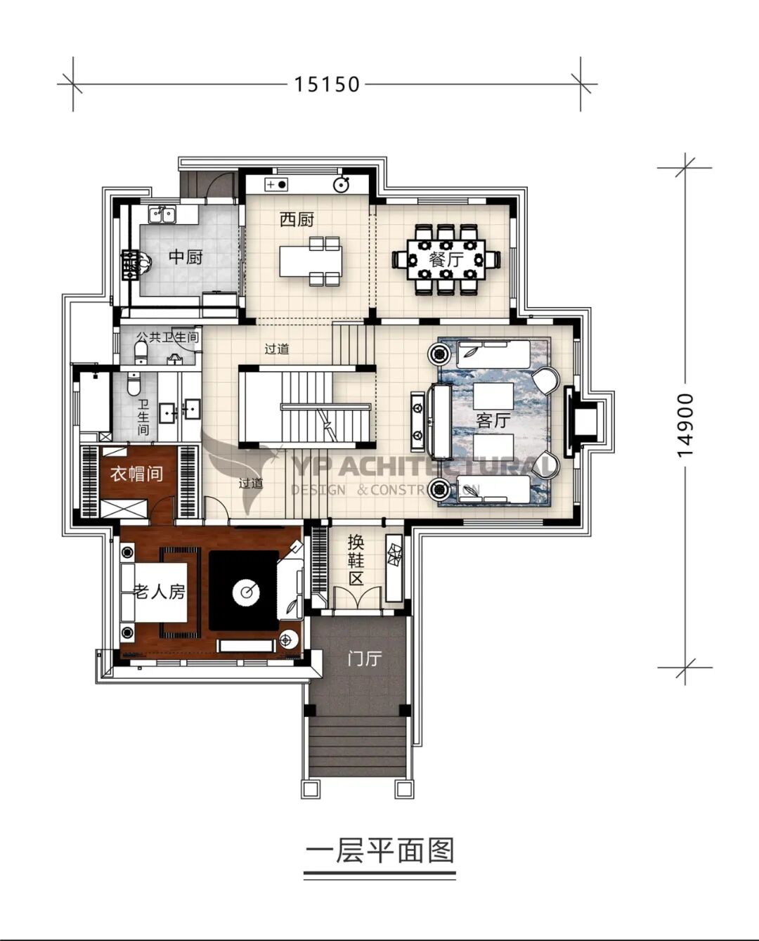 懿品建筑的别墅设计师结合龚先生一家人对别墅的美好向往和实际生活习惯,迅速制定了5室2厅6卫2厨1水吧1影音室1佣人房2阳台1车库的理想搭配。