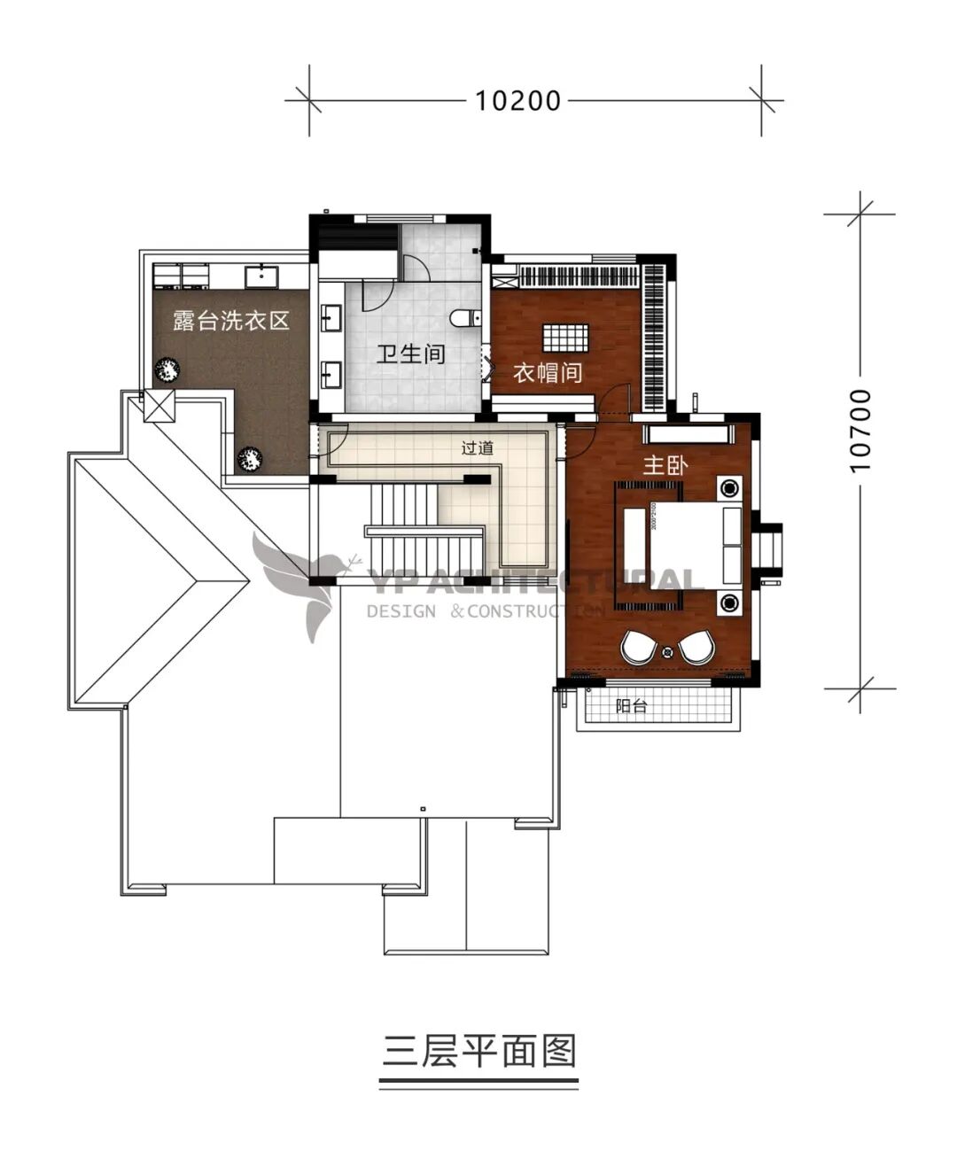 三层除了一个自带衣帽间和超大卫生间的主卧,懿品设计师为龚先生和家人开辟了一个露台洗衣区,除了方便晾晒,还可打造成阳光房,满足龚先生的梦想。